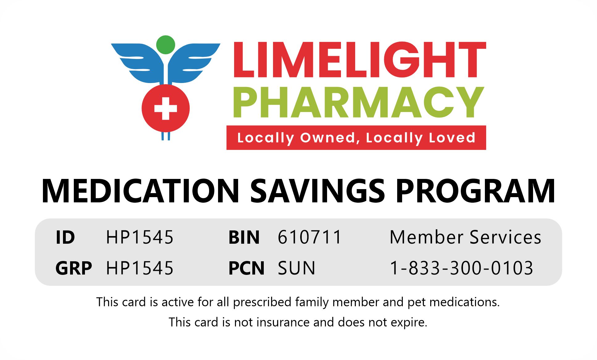 The Limelight Pharmacy medication savings program provides discounts of up to 87% off retail prices at all major chains and most independent pharmacies nationwide.